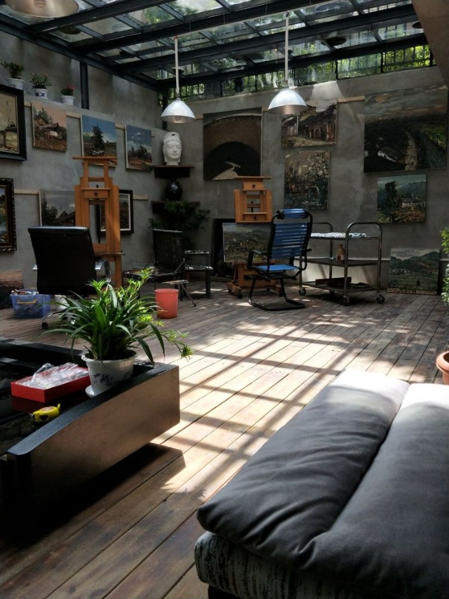 與畫友郭達(dá)平老師、四川美院研究生院長吳松先生在一起