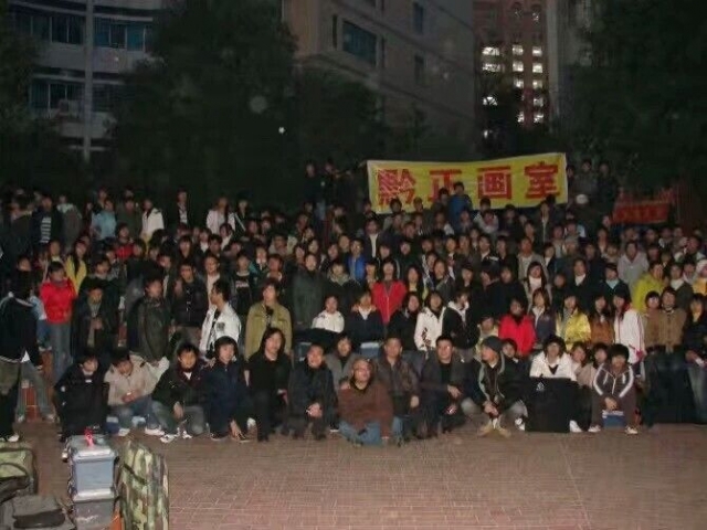 與老師向光、省文聯(lián)主席油畫家李昂、畫友們在一起