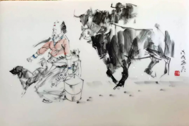 2019年3月間,福建省美協(xié)中國(guó)人物畫藝委會(huì)收到德化縣億加藝品有限公司邀請(qǐng),組織部分畫家分批到德化進(jìn)行現(xiàn)場(chǎng)創(chuàng)作,不同于宣紙的新型瓷板白玉般晶瑩剔透,這一特殊材質(zhì)能很好地還原水痕墨跡,引起了畫家們的極大興趣,大家饒有興致地探索“瓷性”奧妙,嘗試駕嘆“瓷語(yǔ)”的性格,用這種新材料、新視角、新手法創(chuàng)作出來(lái)的作品,經(jīng)過(guò)高溫?zé)疲凇八鸾蝗凇敝猩l(fā)出了一種超乎尋常的魅力,既保留了寫意畫的筆性墨趣,同時(shí)讓瓷板上的墨彩留痕更見(jiàn)神韻,增加了一種從內(nèi)而外顯滲出來(lái)的神奇感覺(jué)??芍^入“瓷”三分,力透“瓷”背,互為包容,相得益彰,徹底改變了畫家們對(duì)原有瓷面繪畫的看法。與我們熟悉的宣紙材質(zhì)相比較,新型瓷板及顏料確實(shí)多了一些不可思議又耐人細(xì)細(xì)玩味的美妙。
