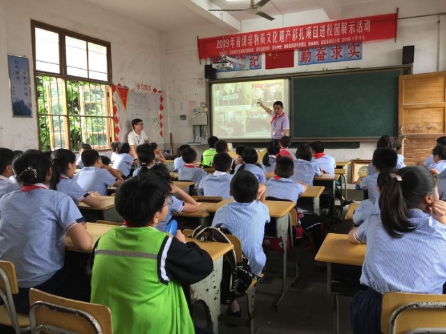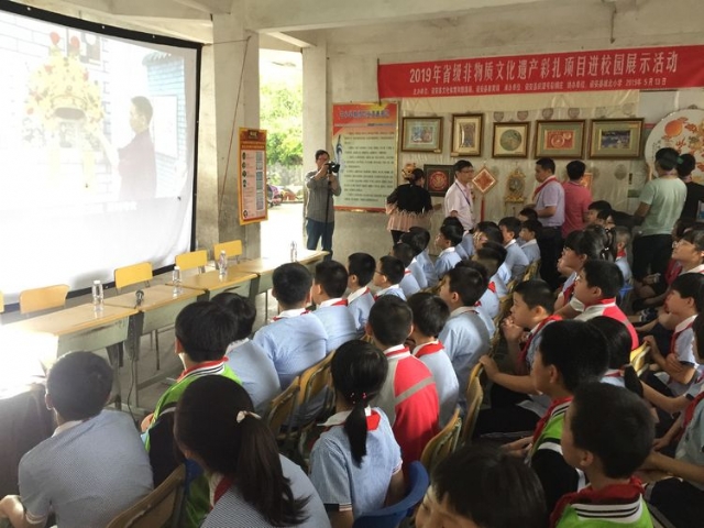 2019.5.21日由詔安縣文化體育和旅游局,教育局主辦的慶源號(hào)彩綢莊省級(jí)非物質(zhì)文化遺產(chǎn)項(xiàng)目進(jìn)學(xué)校展示,傳教。