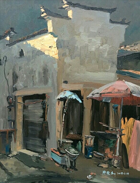2018年的第一天,我再次支起畫箱,再看西門街,雖老墻依舊,但感受完全不同,這次寫生也是十來張作品,但因為此時自己的藝術(shù)之路思緒已經(jīng)清晰明了,所以這次沒有畫一根電線,不是刻意為之,而是從心里不想畫那東西!早年因為經(jīng)歷的原因,心中總有淡淡的憂郁,一直畫不出暖色調(diào),但這批作品卻在無意間都是暖色調(diào),經(jīng)歷二十七年陽光終于撒入畫面,我感動不已……