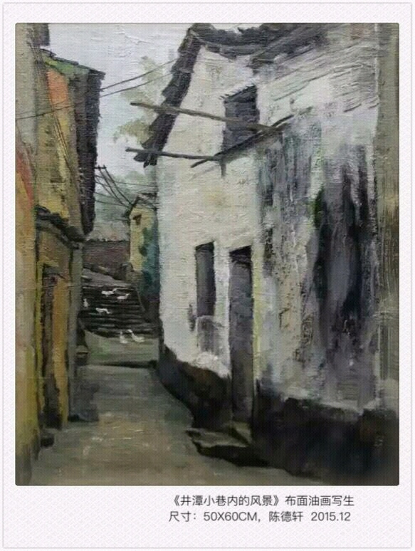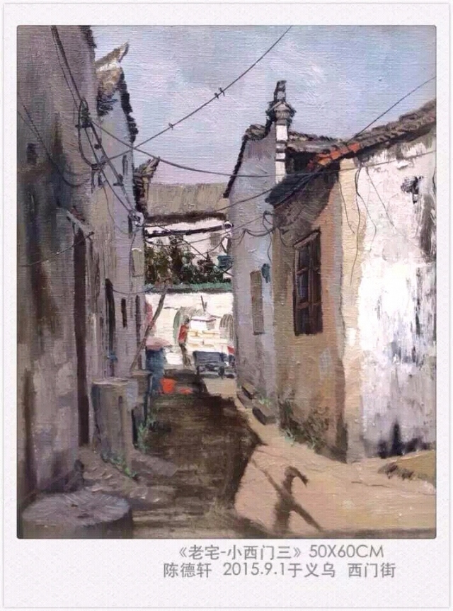 2015再入西門街,支起畫布,擺好畫箱,我低頭禱告,尋求那創(chuàng)造美麗自然之上帝的幫助,禱告完畢,抬頭后我所看到的,就不單單是這些老房子了,西門街的老墻·被歲月洗禮后的滄桑,直擊我的靈魂,看著這些殘破的老墻,我仿佛看到了自己飽經(jīng)滄桑的半生,老墻之上那些縱橫交錯、凌亂不已的電線,不正是我藝術(shù)之路思緒混亂的寫照嘛!就在這激情與顫抖之間第一幅作品就一氣呵成了。