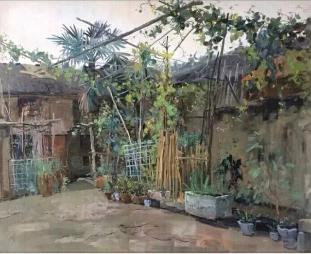 由于室外寫生受光線變化影響,每天只能畫半天,于是這張大畫一連奮戰(zhàn)三個下午終于完成,完成之后腿上已被蚊蟲叮咬近乎麻木。但辛勤付出總是會有相應(yīng)回報,此張作品送選浙江省美術(shù)家協(xié)會、浙江省油畫家協(xié)會聯(lián)合舉辦的“2015融合與拓展·浙江省油畫作品展”入選并獲優(yōu)秀作品獎(此次所有獲獎作品均未分名次)