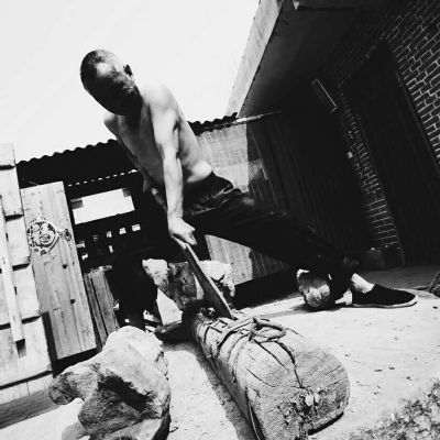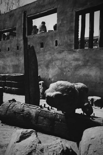 如果說(shuō)“西西弗斯”的行為是一種有希望(至少能從山腳搬到山頂)的不可能話,那朱新戰(zhàn)的“鍘石獅”則是一種無(wú)希望(誰(shuí)的鍘刀能切開石頭?)的不可能。
