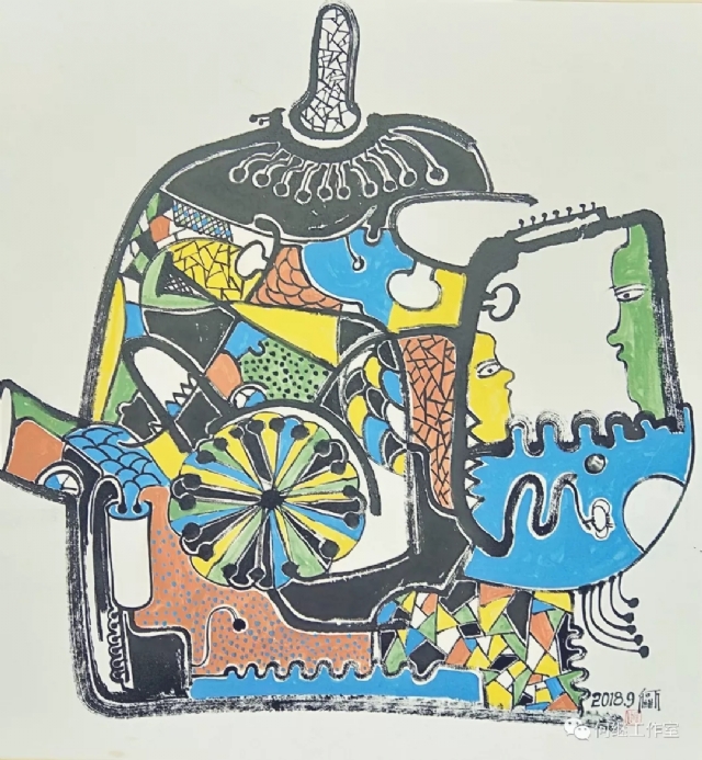 王文:看了何老師的畫我覺得很透明,聽了大家聊我覺得我跟何老師有點類似,我搞音樂20余年,也并沒有進過院校,有時候也去學(xué)習(xí)一下基本功的知識,吸收的也比較龐雜,在某一個階段也進行了音樂的碰撞和融合。感覺何老師的畫,有一些陌生情境的融合,但是他給我的感覺很舒服,這是很重要的。一件藝術(shù)品,無論從聽覺上還是視覺上,都要讓人感覺到舒服自然,我覺得,他的這種事實,可以用來鼓勵他自己的。還有就是我覺,他得這種路子走下去是會讓人找不到北,或者是很陌生,特別重要的是我們要一直堅持這樣走,去做自己想做的事情。