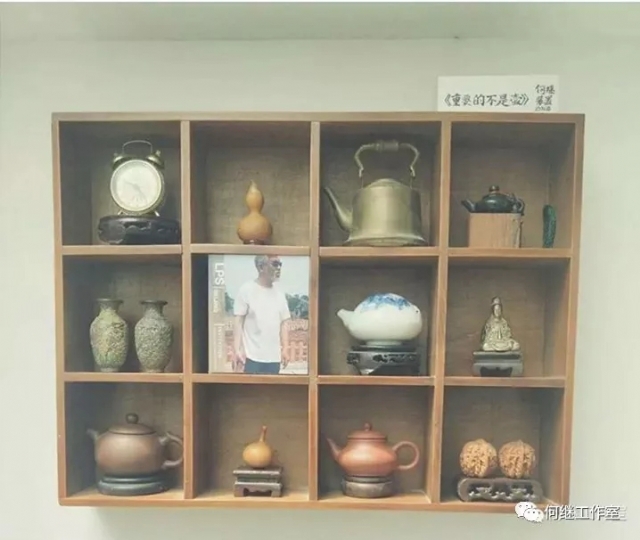 從這個角度上講,他把現(xiàn)代意識或者說當(dāng)代意識這種東西貫穿在他現(xiàn)在的繪畫作品當(dāng)中很有意思,比如說他用了茶壺的意象,這本來是中國文人畫最熟悉的繪畫語言和有隱喻,但是他試圖讓一個比較單一的,已經(jīng)非常清晰的,已寓意所指的這個茶壺,試圖讓他承載,或者鑲嵌、更或者說畫上另外一些東西,讓看起來中國式的空間里面,把繁復(fù)、雜亂的甚至很多看起來完全是混雜的東西表達出來,這種想法是很有意思的。
