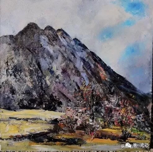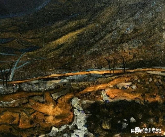 他的畫風就像西北的漢子一樣,粗曠,豪爽、甚至有一絲野蠻。西北風景是沒有風景的風景,只有用心,用魂去體驗和感悟它的雄渾與噴薄才能畫出那種厚重。