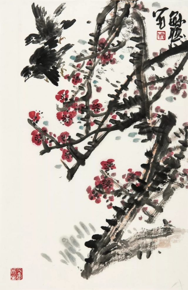 莊毓聰:中國(guó)大寫(xiě)意花鳥(niǎo)是最能體現(xiàn)中國(guó)民族藝術(shù)高度的形式之一,由古至今,在中國(guó)美術(shù)史中取得了輝煌成就的藝術(shù)家不乏從事大寫(xiě)意花鳥(niǎo)畫(huà)的創(chuàng)作方向,而且取得了讓后人難以企及的高度。在中國(guó)繪畫(huà)的領(lǐng)域中,我專力于中國(guó)大寫(xiě)意花鳥(niǎo)畫(huà)創(chuàng)作。民族大寫(xiě)意精神作為中華文脈的分支,可以上溯到哲思美學(xué)這一文化境界。在以具有抽象性、個(gè)性化、創(chuàng)造性、音樂(lè)般節(jié)奏的筆墨藝術(shù)來(lái)寫(xiě)形、寫(xiě)境與抒情時(shí),是畫(huà)家情感、才思、哲學(xué)語(yǔ)匯以及對(duì)世界、對(duì)人生的體悟,進(jìn)行著詩(shī)意呈現(xiàn)。文人大寫(xiě)意花鳥(niǎo)畫(huà)從明代徐渭、清代八大、近代吳昌碩、齊白石、潘天壽、李苦禪,傳承有序,形成一整套理法和美學(xué)體系,我們應(yīng)以高度的自信心和自豪感去繼承與弘揚(yáng)我們的民族大寫(xiě)意精神。中國(guó)大寫(xiě)意畫(huà)離不開(kāi)中國(guó)文化和中國(guó)哲學(xué)的土壤,我們的藝術(shù)創(chuàng)作也應(yīng)站穩(wěn)文化立場(chǎng),凸顯自己的民族性,讓全世界了解我們的藝術(shù),了解我們的民族,學(xué)習(xí)我們的文化。