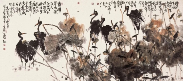 莊毓聰 留得枯荷聽(tīng)雨聲 150×300cm 2015年