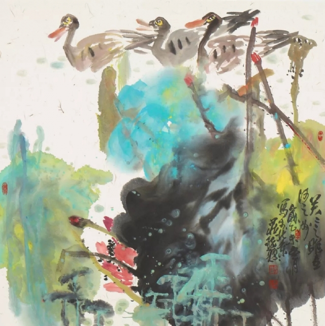莊毓聰 關(guān)關(guān)雎鳩 96×96cm 2015年