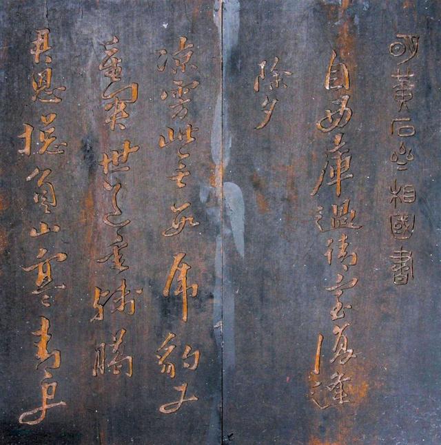 黃道周行書(shū)《自西庫(kù)過(guò)請(qǐng)室復(fù)逢除夕》為十首五言律詩(shī),明崇禎十三年(1640)除夕,黃道周于北京獄中所作。清初作木刻板五片,每片23厘米見(jiàn)方,漳浦縣博物館藏。