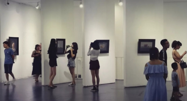 “昊天他為人一直很謙卑、樂觀,今天來他的個展,發(fā)現(xiàn)他在畫面上比之前有提升,畫面里多了自己的想法,從暗香到假面都反映了一些社會現(xiàn)狀,給我印象非常深刻的是秘境系列的埃及印象因為他融入了埃及拓印的一些元素很新穎,希望他以后有更出色的畫作,期待他留學歸來?!?/span>