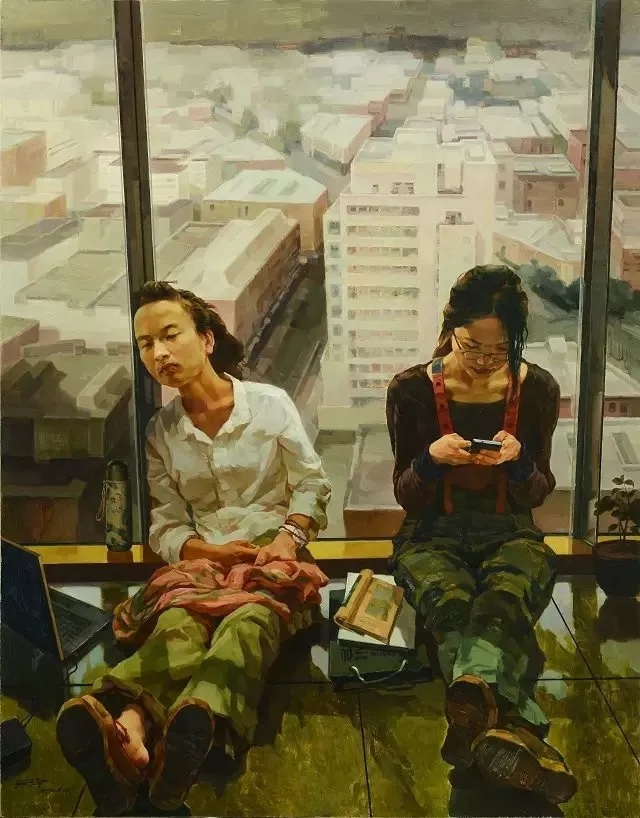 盡管嚴(yán)子宇作品傳承的是學(xué)院風(fēng)范,但他仍有意識在突圍,他的油畫《暖風(fēng)》將人重疊在一個大背景下:蕭條的農(nóng)村,陌生的馬路;農(nóng)村留守兒童與老人無奈的眼神,這是在中國的普遍現(xiàn)象。他仿佛站在高空,保持了一種姿態(tài)對人間進(jìn)行航拍、記錄與敘述。盡管在目前,中國的總體經(jīng)濟(jì)水平迅猛漫堤,然而我們要看到農(nóng)村與城市之間保持著巨大的差異,人的精神層面是灰暗的,內(nèi)心追求是模糊的,在偏遠(yuǎn)的山區(qū),卻仍然存在著絕對貧困的現(xiàn)象,作為一個對現(xiàn)實抱有態(tài)度的藝術(shù)家,他怎能忽視不見,他必須發(fā)聲。在大量農(nóng)村年輕人涌入城市之后,給農(nóng)村的未來發(fā)展資源上是帶來了流失,并且還產(chǎn)生了一個只有我們這個社會才存在的獨特群體(農(nóng)村留守老人和兒童),在他的筆下,劇量增加的欲望使農(nóng)村的人居造成了松散,這些底層的狀態(tài)與聲響,都是他心靈的顆粒。