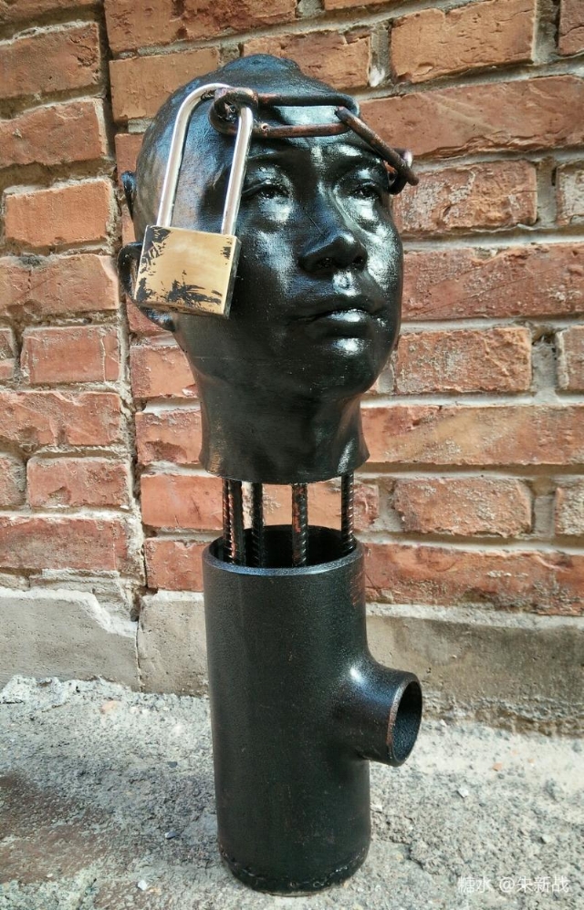 鎖從一個工具到國人生活中的:同心鎖,長命鎖,被賦予了更多生活的寓意和情感色彩。一個事物因為被賦予了更多的內(nèi)涵,其外延被不斷拓展,從而豐富著人們眼中的世界。朱新戰(zhàn)運用他的藝術想象力在不斷制造新的圖景和豐富著詞匯的內(nèi)涵,他把鎖的外延從世俗生活范式拓展到藝術表達的邊界之內(nèi),這比他所要表達的具體語言更加有價值和意義,因為他以自己的獨到之視角,不只是豐富了藝術的形式,也拓展了思維與認知的疆界。