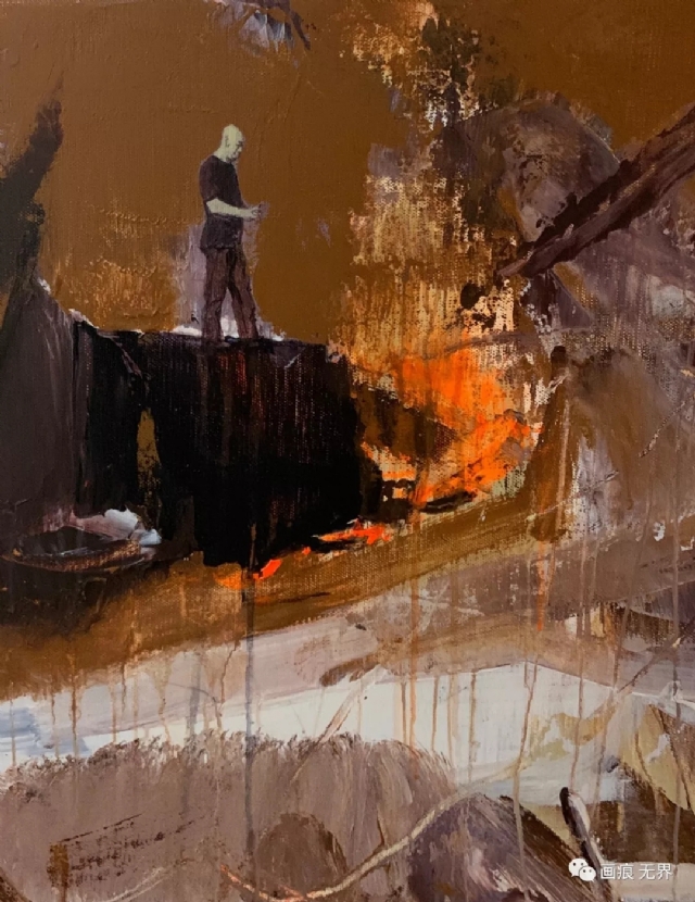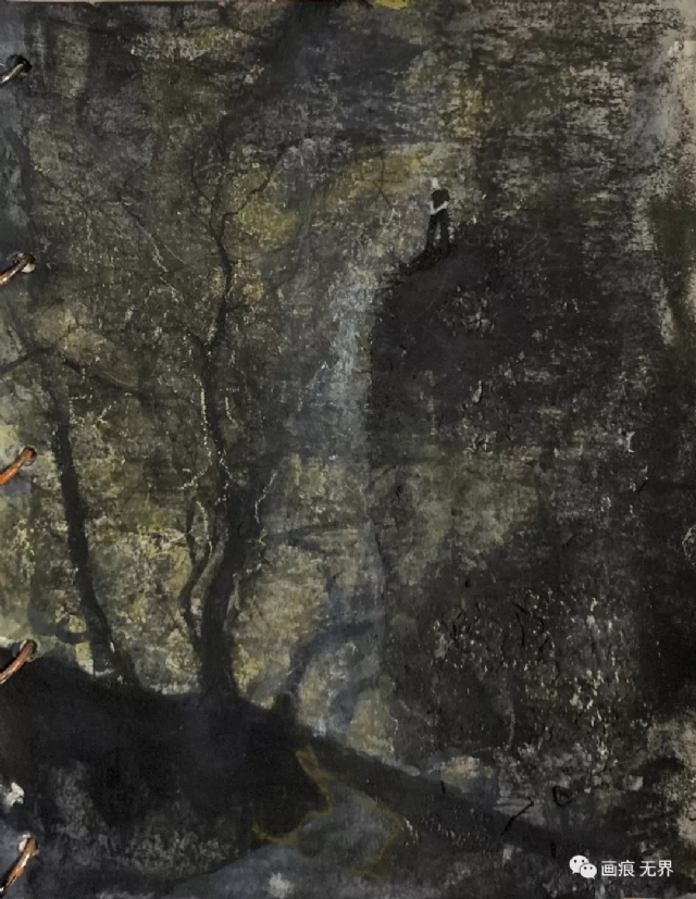 我的紙本語言,沒有規(guī)范的結(jié)構(gòu)與色彩,沒有長途的厭倦與恐懼,沒有所謂意識形態(tài)下的瘋狂與對峙……想法的自由使得自己不受材料工具的限制,不受任何外媒約束,方寸之間,揮灑靈魂,仿佛進入夢游式的想象。倒置、平涂、反復(fù)涂抹……甚至可以到錯誤地應(yīng)用你手上的一切。各種能觸摸到的物,任何能想到的材料,甚至地上的泥土等,都可以信手拈來,發(fā)揮到極致。
