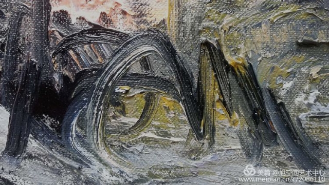 武彥君的油畫以強(qiáng)烈明晰的線條、簡(jiǎn)化寫意的造型,碩大的體積感、主觀化的對(duì)比色彩,豐富的大色塊關(guān)系,取得風(fēng)景油畫圖式音樂(lè)性、節(jié)奏感和形式的完整。高更強(qiáng)烈而單純的色彩,莫奈粗獷、跳躍的用筆、梵高線條的形式感和精神表達(dá)以及東方風(fēng)格的整體色彩圖式、中國(guó)繪畫的寫意精神形成了武彥君個(gè)人鮮明的風(fēng)景油畫風(fēng)格。?