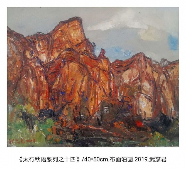 楊飛云說(shuō),寫生是一個(gè)油畫家必須經(jīng)常持守的本分,是親近自然、體驗(yàn)生命、錘煉畫藝的最佳方式,是畫家用畫筆和心靈直接觸摸生命本源的有效途徑??梢哉f(shuō),沒(méi)有寫生這種方式就沒(méi)有油畫這門奇妙的藝術(shù)品類產(chǎn)生。特定的時(shí)空和情境構(gòu)成審美契機(jī),寫生使藝術(shù)創(chuàng)作保持新鮮的充分的感受性和想象力。風(fēng)景寫生使人一定程度上離開人群的包圍,自省并思考永恒的命題。大自然與人類生活是藝術(shù)的起初和終點(diǎn),關(guān)于山水風(fēng)景和地域人文的寫生與創(chuàng)作,幾乎是藝術(shù)家的使命。武彥君喜歡畫太行山,經(jīng)常前往太行山區(qū)寫生,他本人很像個(gè)山中主人一樣,體味山水,感悟風(fēng)景,情恩無(wú)限。