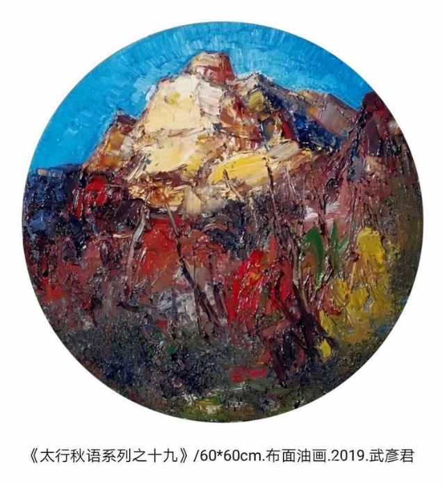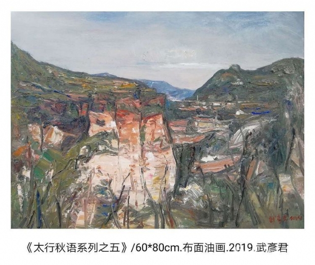隋代以來(lái),中國(guó)有強(qiáng)大的山水畫和文人畫歷史,山居、歸隱,中國(guó)風(fēng)景早已是一種信仰和情懷,武彥君的風(fēng)景油畫是中國(guó)式的,他自認(rèn)他的作品是“逸筆草草、聊以自樂(lè)”。以自然為師,行走在山間,他相信這其中有神存在,相信創(chuàng)造與創(chuàng)作的意蘊(yùn)。歷史悠久、靈秀壯美的太行山為武彥君的藝術(shù)創(chuàng)作提供了無(wú)盡的靈感源泉。武彥君的寫意風(fēng)景油畫,蒼翠寫意、古樸雄渾,描繪著太行山,又隱喻著智者高古堅(jiān)韌的情懷、深沉放達(dá)的生命境界。