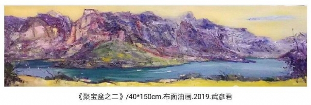 吳昌碩、潘天壽雄渾蒼秀的畫風(fēng)和豪氣,影響著武彥君?!拔嶂^物有天,物物皆殊相;吾謂筆有靈,筆筆皆殊狀?!保▍遣T語(yǔ))他以金石氣蘊(yùn)寫意入畫,喜愛(ài)綠色、藍(lán)色和紫色,用色強(qiáng)烈、用筆老辣,在扎實(shí)寫實(shí)、熟練寫實(shí)的西洋繪畫功底上,武彥君已經(jīng)形成了蒼翠寫意、古樸雄渾的風(fēng)景油畫風(fēng)格。