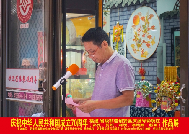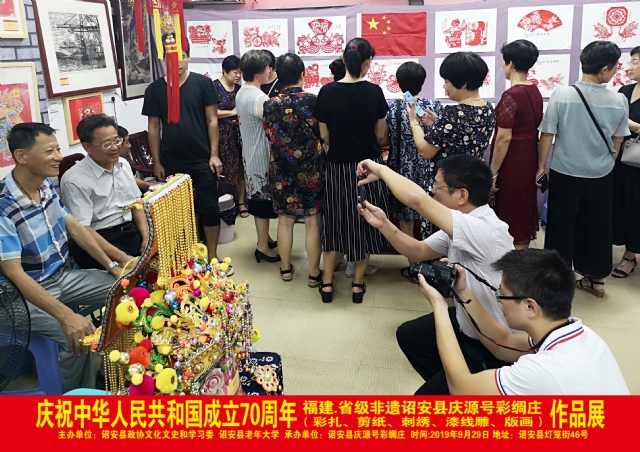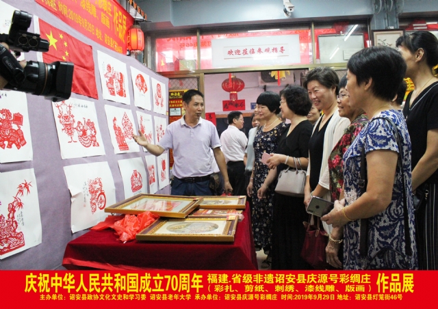 慶國慶,(福建省慶源號工藝品有限公司揭牌儀式,慶祝中華人民共和國成立七十周年(彩扎,剪紙,刺繡,漆線雕,版畫)作品展