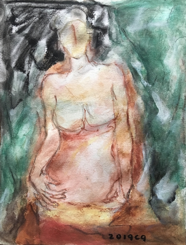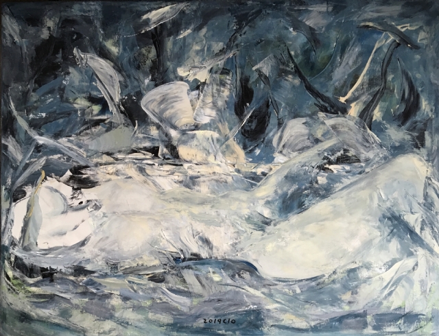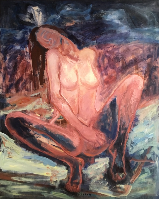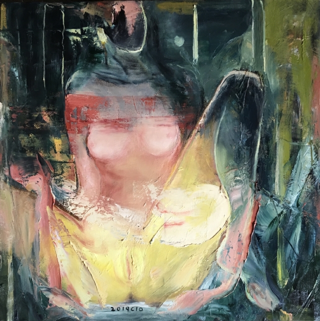 經(jīng)過(guò)幾年的人物創(chuàng)作,心中的那份涌動(dòng)還是有一股想沖出畫面的感覺(jué),畫布其實(shí)是有限的空間,畫家在畫面能做的其實(shí)有限,一幅作品可能是故事的瞬間,即便是那個(gè)瞬間,顏料的堆積總是要穿透我的心胸,內(nèi)心的空間是個(gè)無(wú)限的黑洞。我每天都渴望坐在畫布前,與自己的內(nèi)心對(duì)話。描述女性心中的那份細(xì)柔的遐想,訴說(shuō)一點(diǎn)一滴的情懷,每逢完成一幅作品,總能釋然一次心靈相遇,有時(shí)悲傷有時(shí)期許和萌動(dòng),說(shuō)不清貪婪還是欲望。有時(shí)畫面釋放得過(guò)于單純和原始,卻是自我的本性使然??捎袝r(shí)卻讓自己精疲力盡,總想期待那種感動(dòng)的思緒,可沒(méi)有讓我真正的滿足,還是不停尋找更痛快的撕裂,有時(shí)感覺(jué)任何語(yǔ)言,任何繪畫方式和媒介都無(wú)法釋放內(nèi)心那份感動(dòng)。