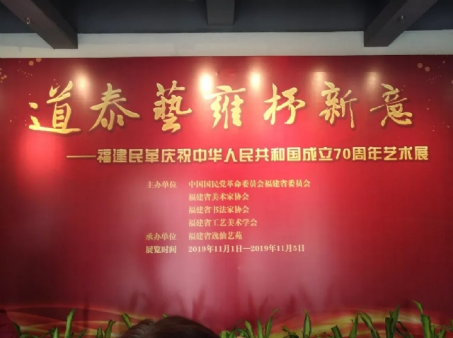同心歌盛世,大藝寫華章。為慶祝中華人民共和國成立70周年、人民政協(xié)成立70周年,11月1日,由民革福建省委、福建省美術(shù)家協(xié)會(huì)、福建省書法家協(xié)會(huì)、福建省工藝美術(shù)學(xué)會(huì)共同主辦,福建省逸仙藝苑承辦的“道泰藝雍抒新意——福建民革慶祝中華人民共和國成立70周年藝術(shù)展”在福州畫院隆重開幕。