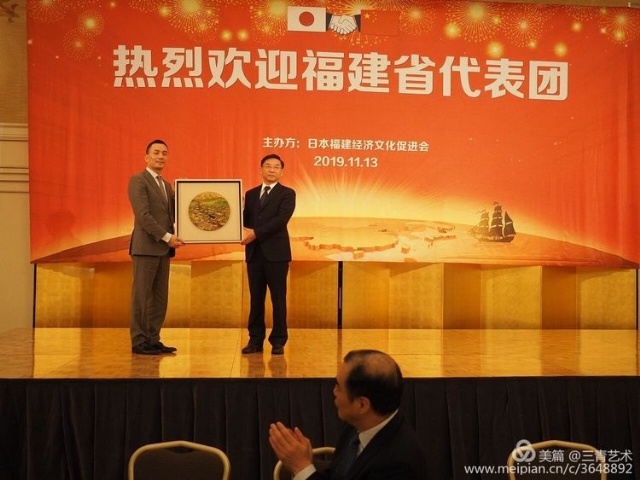 周榕清教授監(jiān)制文創(chuàng)漆藝作品《家園·三坊七巷》隨福建省委書記、省人大常委會主任于偉國出訪東京,作為省禮由日本福建經(jīng)濟文化促進會保存留念。