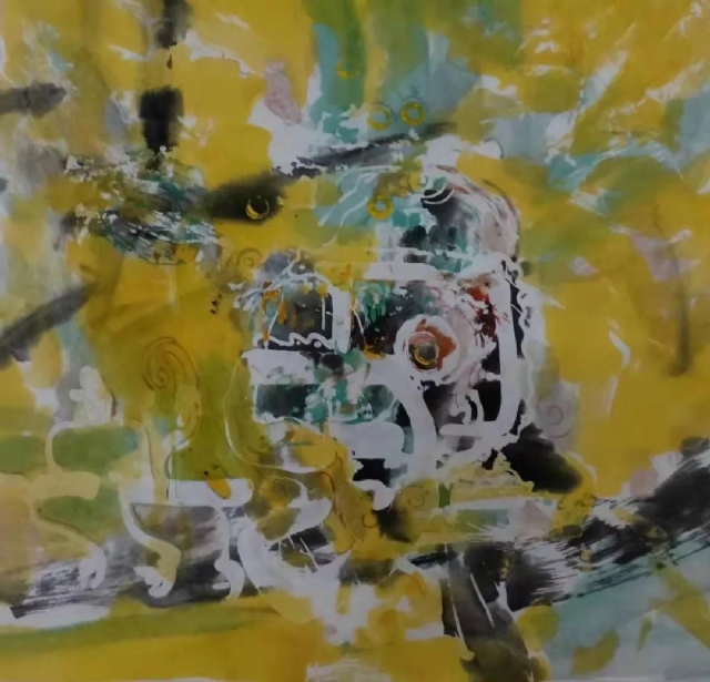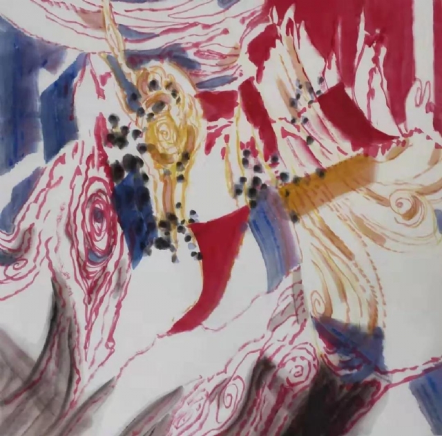 晉人宮紅權(quán)是才情皆備智慧型畫家,他為人仗義,是一位很好的合作伙伴。他的彩墨亦真亦幻,近來市景山水新作有新意和趣味,像魔術(shù)一樣的好玩,是會(huì)用腦子的畫家!