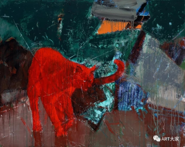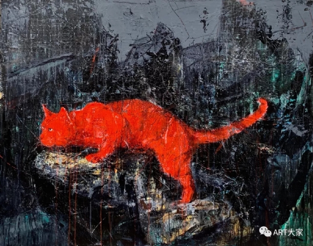 但把這種排列圈定在陳明華的繪畫藝術中,觀察者首先會從一只橘紅色的貓躍然畫布上,看到秩序在通常審美語境下的蒼白和無奈。雖然那只是一只貓,但陳明華利用了色彩排列中的寬度和張力以及油畫材料的厚度,制造了某種力量感,他在讓貓變得更加詭譎的同時,流露出了他強烈燃燒的表現主義情緒。