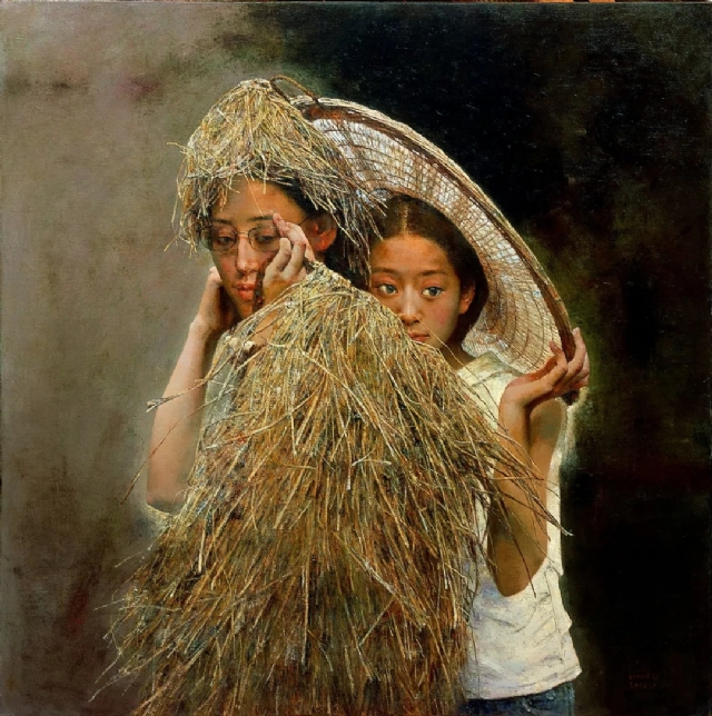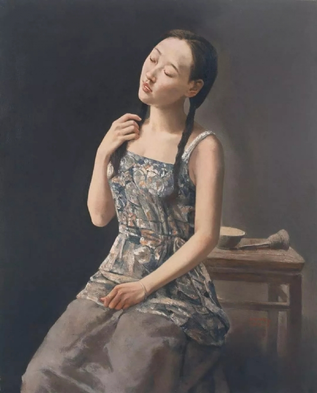 于是我就有了一股創(chuàng)作的沖動,并努力地把這些模糊的印跡變得清晰:《春風又綠》、“像花兒一樣”系列《女孩》、“仲夏之夢”系列、“夏日記憶”系列及《雨夏》,就是將生活中平凡的人和事凝固在畫布上,去體味、去挖掘人生的意味。