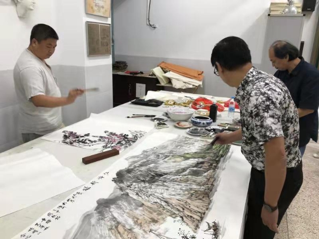 此次筆會,書畫名家們?yōu)檎闹萑械?00周年校慶留下許多寶貴墨寶。
