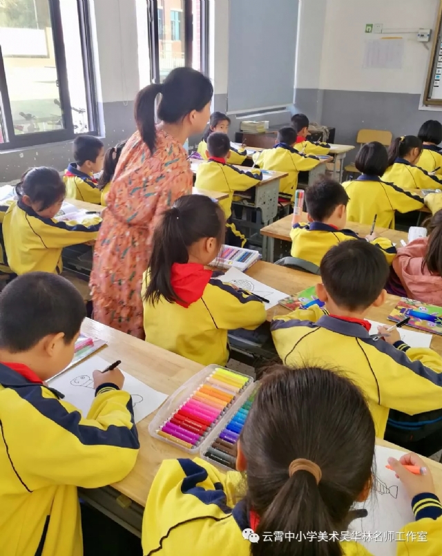 10月30日上午,云霄縣中小學美術(shù)吳華林名師工作室“送教下鄉(xiāng)”活動首次在陳岱中心小學成功舉辦。工作室全體成員還有來自各個鄉(xiāng)鎮(zhèn)中心小學的美術(shù)教師和陳岱中心小學本土專兼職教師共35名參加本次交流研討活動。來自莆美中心小學的名師工作室成員湯奕奕老師示范執(zhí)教一年級美術(shù)課——《誰畫的魚最大》