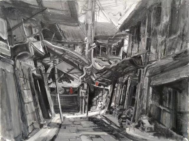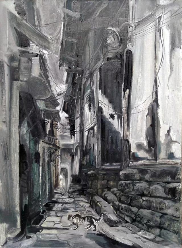 《福寶古鎮(zhèn)》布面油畫 規(guī)格80x60金慶勇 2019