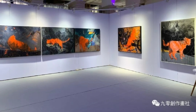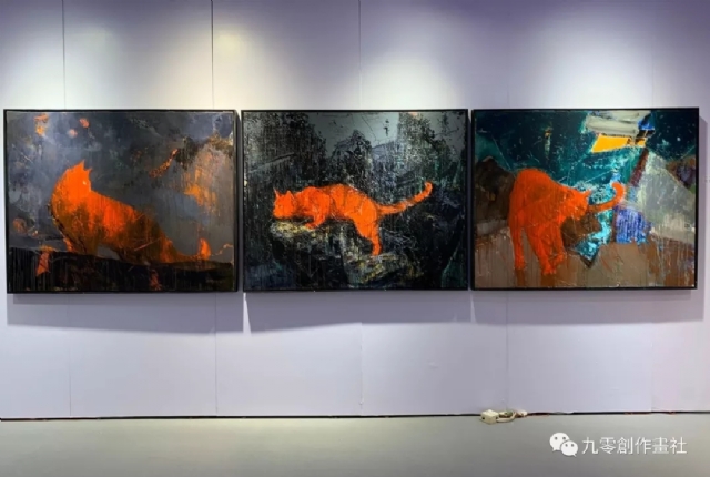 但把這種排列圈定在陳明華的繪畫藝術(shù)中,觀察者首先會從一只橘紅色的貓躍然畫布上,看到秩序在通常審美語境下的蒼白和無奈。雖然那只是一只貓,但陳明華利用了色彩排列中的寬度和張力以及油畫材料的厚度,制造了某種力量感,他在讓貓變得更加詭譎的同時,流露出了他強烈燃燒的表現(xiàn)主義情緒。