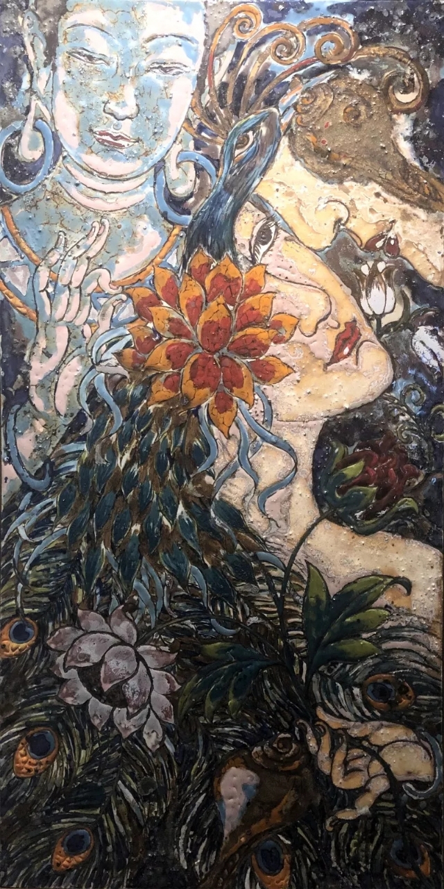 “這在景德鎮(zhèn)是可遇而不可求的經(jīng)歷,有許多人探索一輩子,都難以登入顏色釉繪畫創(chuàng)作之門,因?yàn)轭伾詣?chuàng)作有著太多的獨(dú)門秘方,概不外傳,也因?yàn)槟鞘怯缅X燒出來的經(jīng)驗(yàn)?!庇噫I說,在這期間,她完成了一批禪意與女性主義題材結(jié)合,以表現(xiàn)主義手法創(chuàng)作的高溫顏色釉作品,并深深為高溫顏色釉的魅力所感動(dòng),而不愿意移情別戀了。