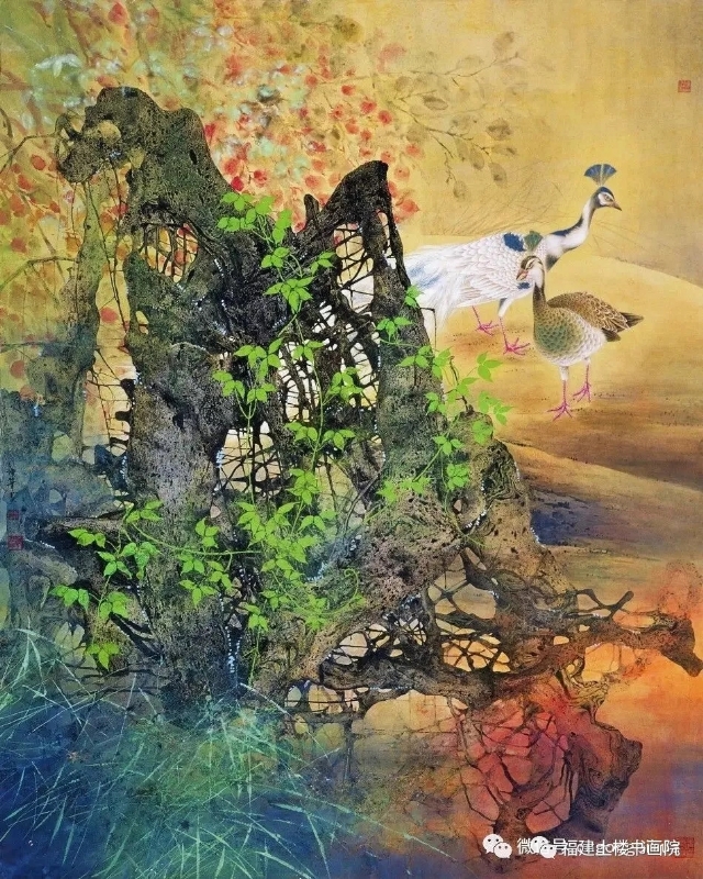 畫家鄭坤華主攻工筆花鳥畫。他的工筆畫遠(yuǎn)承精于審物的宋代“院體”和元代風(fēng)韻,精研古法,深思徹悟,精于變通,吞吐歷代諸家之長(zhǎng),兼收并蓄而融為一體,在傳統(tǒng)與現(xiàn)代的融變與創(chuàng)新中獨(dú)辟蹊徑,將創(chuàng)造力推到一個(gè)完全嶄新的境界,開創(chuàng)了其獨(dú)特的工筆花鳥新圖式。鄭坤華在創(chuàng)作中,把強(qiáng)化和純化了的視覺語(yǔ)言放在了首位。以嚴(yán)謹(jǐn)慎密替代了柔弱浮淺和粗陋松散,莊重典雅抵制喧囂媚俗,新的工筆畫形式終于在轉(zhuǎn)換中脫穎而出練。