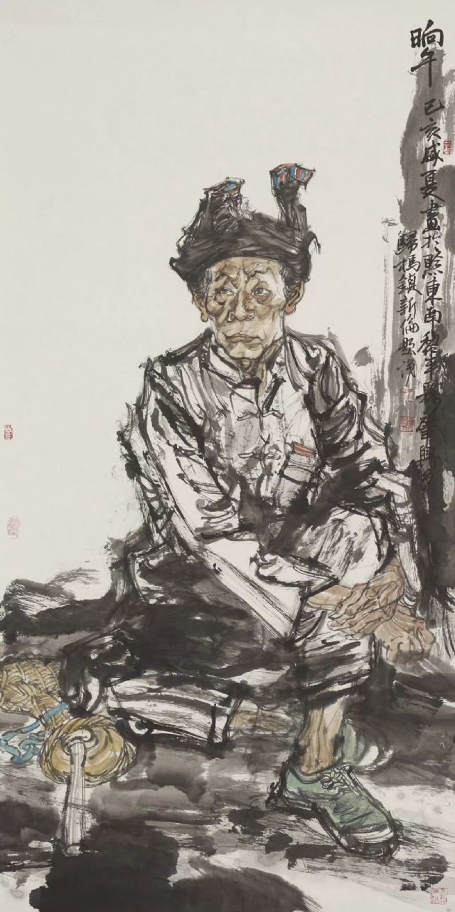 在人物選擇上,王新倫以刻畫(huà)中國(guó)當(dāng)代社會(huì)底層民眾甚至少數(shù)民族群眾為主。這些社會(huì)底層蕓蕓眾生雖然肩負(fù)生活的沉重負(fù)擔(dān),但較少保守懦弱這些痼疾,大多性格率直單純,形象強(qiáng)悍生動(dòng)。在表現(xiàn)方法上,王新倫追求單純明朗,放棄繁復(fù)變化,以粗獷的線條增強(qiáng)畫(huà)面的厚重感和蒼潤(rùn)效果。