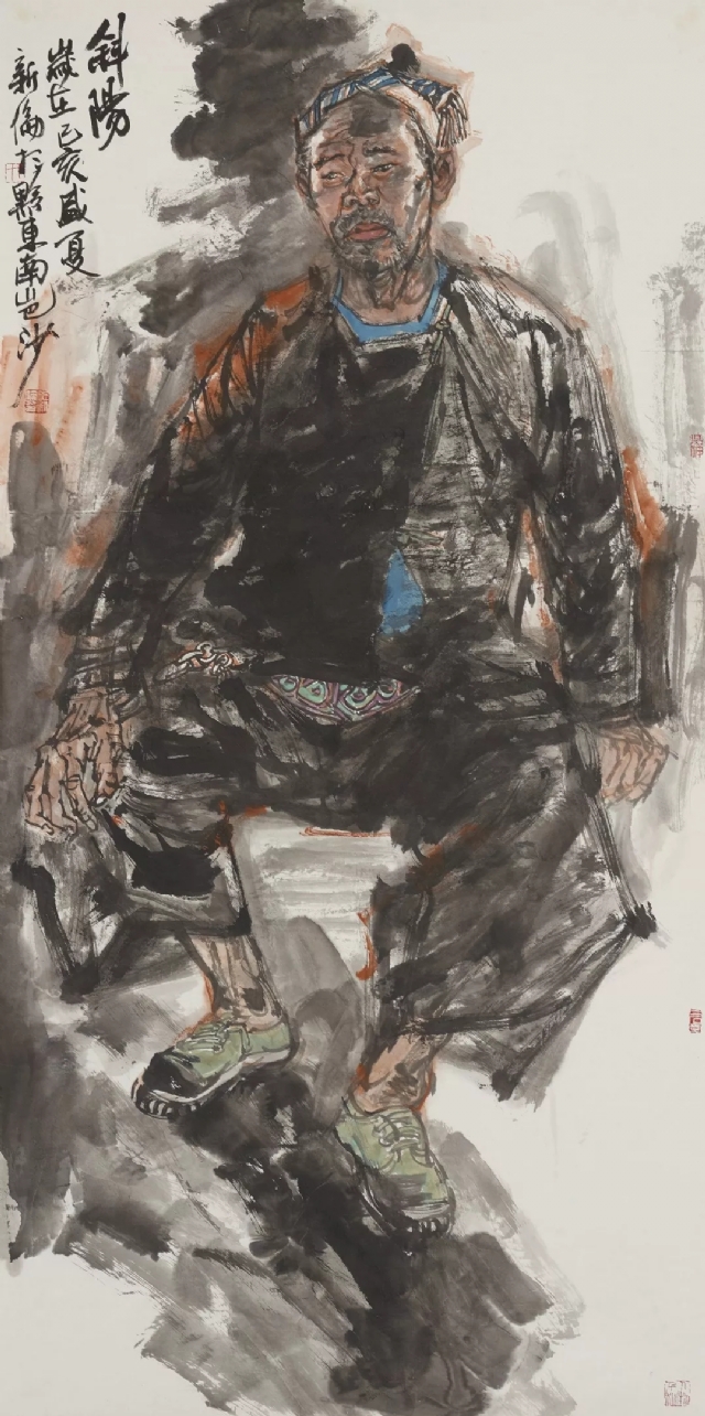 王新倫還大膽吸收西方油畫(huà)的一些表現(xiàn)方法,強(qiáng)化一些中國(guó)畫(huà)線條的表現(xiàn)力,增強(qiáng)造型的塑造力。這就是說(shuō),王新倫找到了一些屬于自己的表現(xiàn)手法。的確,中國(guó)畫(huà)在線條上比較圓潤(rùn)飄逸,甚至有些柔靡嫵媚。在中國(guó)畫(huà)中,有些崇山峻嶺雖然巍峨挺拔,氣勢(shì)恢宏,但與人類仍然是和諧的融洽的。而在西方繪畫(huà)中,那些崇高的對(duì)象包含著恐懼的東西。這無(wú)疑能夠令人產(chǎn)生敬畏之感。而人如果沒(méi)有這種敬畏之心,就難以產(chǎn)生悲劇的憂患意識(shí)和超越意識(shí)。王新倫在吸收西方油畫(huà)的一些表現(xiàn)方法時(shí)沒(méi)有汰除那些斧鑿痕跡,而是著力刻畫(huà)了中國(guó)當(dāng)代社會(huì)底層蕓蕓眾生渴望發(fā)展的強(qiáng)烈沖動(dòng),畫(huà)面雄渾而大氣。