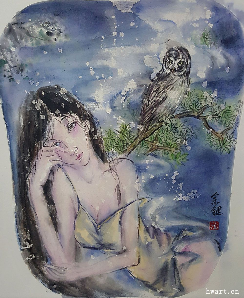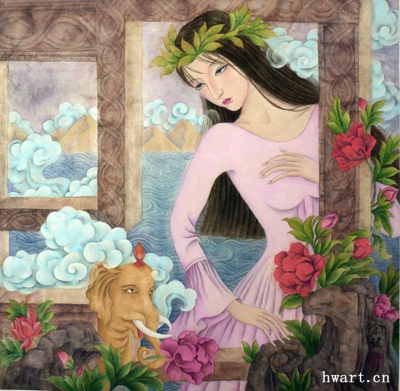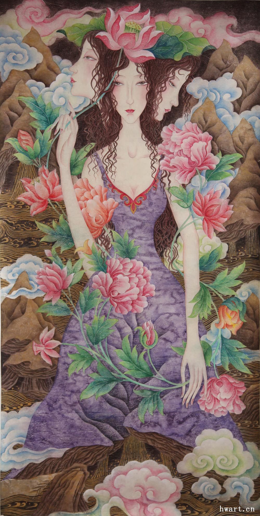 《嫣然》之二工筆重彩,2016年 四尺斗方