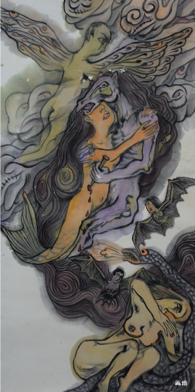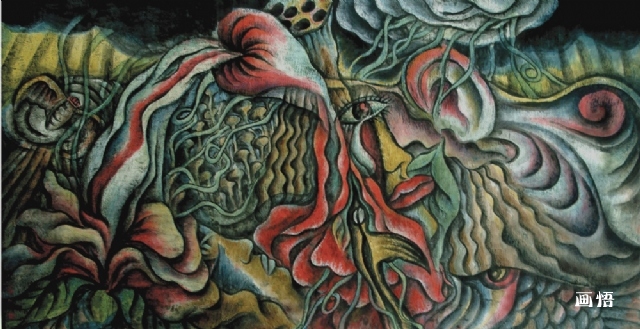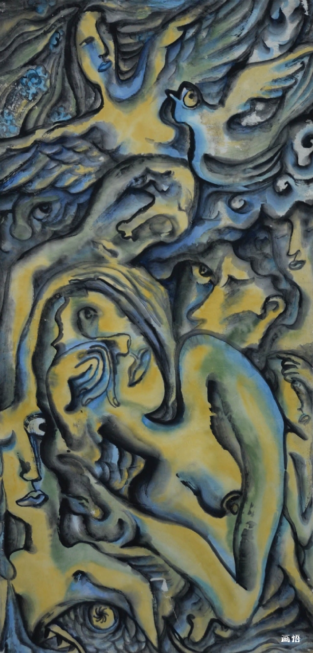 《飛躍荒野》系列之一 彩墨 2000年 69X136CM