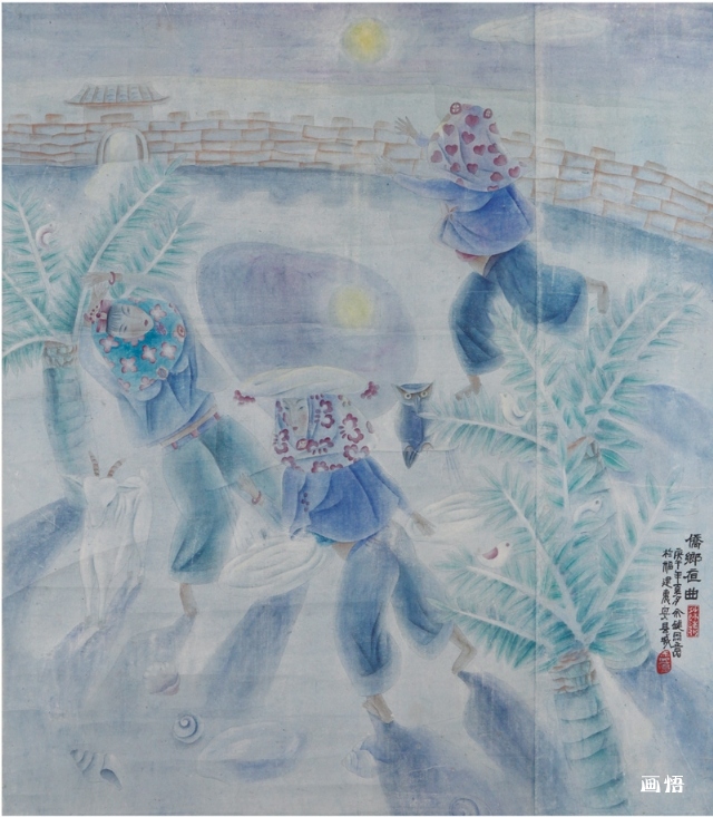 《僑鄉(xiāng)夜曲》工筆淡彩 1989年 87X97CM