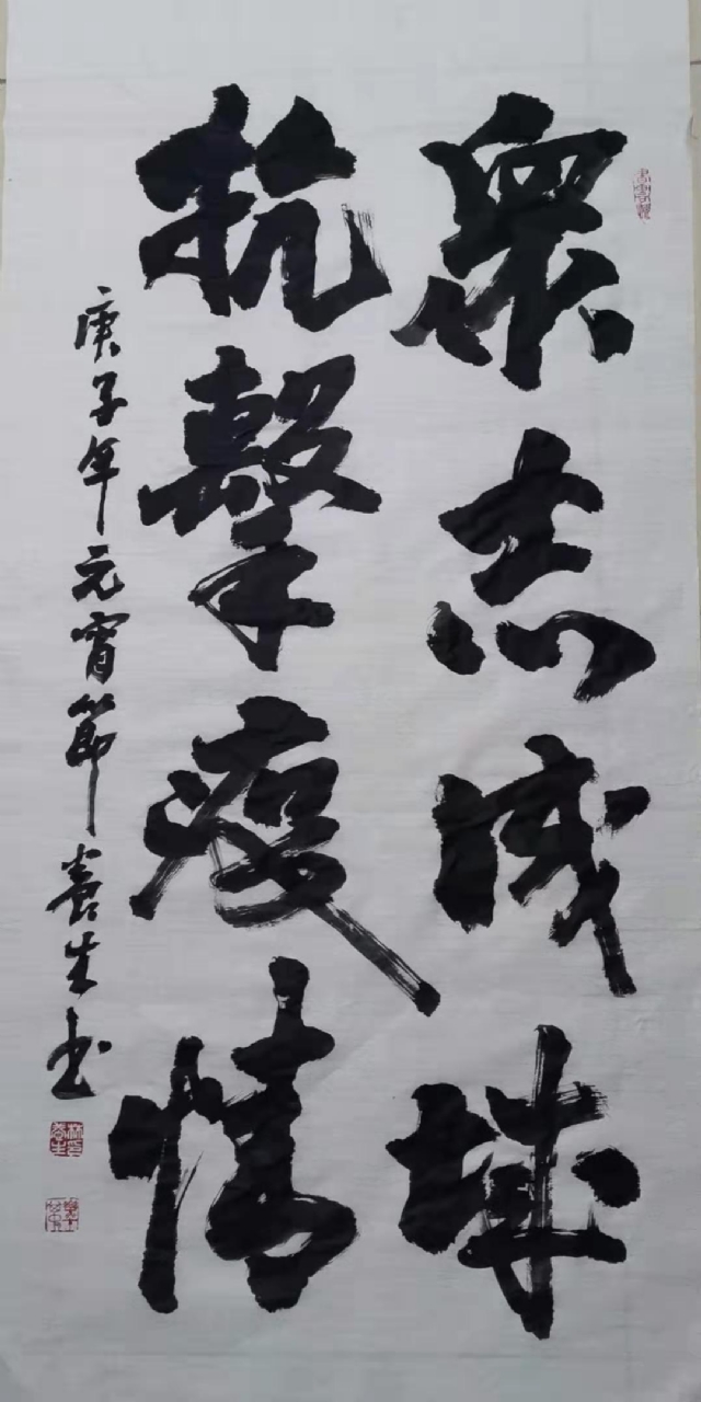 確實,這是一場戰(zhàn)斗,這是沒有硝煙的疫情防控阻擊戰(zhàn),這也是人民群眾生命安全和身體健康的保衛(wèi)戰(zhàn)。從南方到北方,從城市到鄉(xiāng)村,從黨員、干部到群眾,人人都是戰(zhàn)斗員。最值得欽佩的,是那些挺身而出、沖鋒在前的“白衣戰(zhàn)士”。誠然醫(yī)生有醫(yī)生的武器,但我們文人有文人的武器!19世紀(jì)二三十年代,偉大的民主戰(zhàn)士魯迅先生手握如椽巨筆,寫下了一篇篇戰(zhàn)斗檄文,毛澤東同志評價為“像投槍,像匕首,直刺向黑暗勢力”。我們雖沒有魯迅先生的才華,沒有他那樣的戰(zhàn)斗力,但我們詔安縣指墨藝術(shù)研究會全體會員,為響應(yīng)國家打贏這場戰(zhàn)役的指示精神,為完成縣文聯(lián)交付的任務(wù)要求,也以筆為槍、以墨為彈,積極描繪這個特殊時期的精神圖譜,從而鼓舞士氣,增強信心,戰(zhàn)勝這場沒有硝煙的戰(zhàn)役。