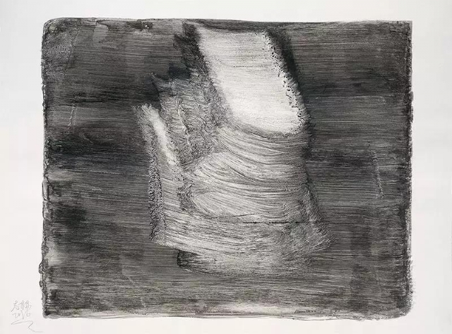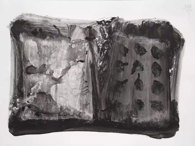 ◎老赫 硬質紙水墨加其它 《水墨思維·天石·與時間有關嗎?》系列之三十九 90cm×119cm 2016