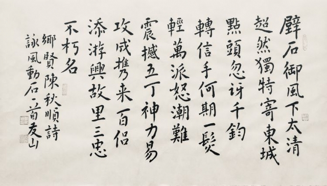 書(shū)法作品“東山風(fēng)動(dòng)石詩(shī)十首”選自楊寶孝先生主編的《東山攬勝前人詩(shī)詞選》意在通過(guò)書(shū)法藝術(shù)形式,把詩(shī)人詠風(fēng)動(dòng)石詩(shī)詞作品中所蘊(yùn)涵的審美情趣和健康向上的精神再次展現(xiàn)??
