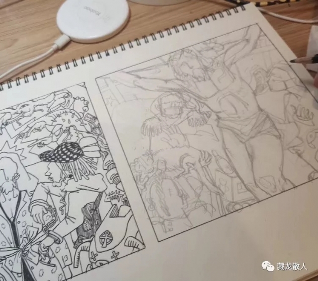 這些草圖是他應(yīng)意大利馬薩教堂一個展覽的征集、正在創(chuàng)作中的作品。盡管他遠在蠻夷之邦,還為我大武漢的閑事操碎了玻璃心。