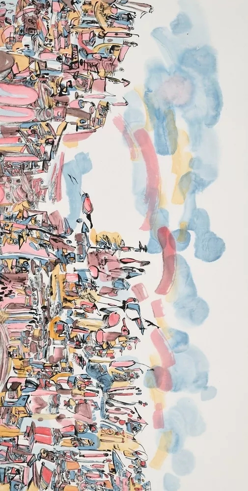 這些作品,它們仿佛是畫家扔給世人的梯子,籍此,在去往畫家神秘?zé)o垠的內(nèi)心世界時(shí),就有跡可循.雖然線條雜亂,塊面綜錯(cuò),但山巒依稀,峰壑已顯.方寸之間,已把遙遠(yuǎn)的心靈之山呈現(xiàn)到觀者眼前。