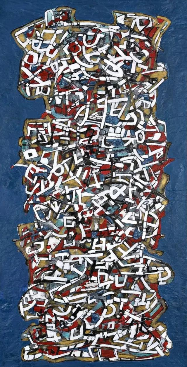 馮開(kāi)蘭是大連的書(shū)象學(xué)派黃埔戰(zhàn)士,曾經(jīng)的機(jī)械工程師,她癡迷地給童話里的每個(gè)角色能縫制出絢麗的服飾來(lái),她曾經(jīng)隱藏在荒村中求師琢磨油畫,而她的女兒遠(yuǎn)走德國(guó),在海風(fēng)拂郁的布萊梅古城里攻讀藝術(shù),她變賣了房子投奔魏館,成了黃埔一期的書(shū)象派藝術(shù)家。挑燈夜戰(zhàn),苦臨古碑;撕豪沏墨,織構(gòu)心圖。蠶豆大的怪字亂石鋪街,我定義其為神奇的小楷,色符線咒揖錯(cuò),野壑荒椏蝶喧,將你羽化,拋墮云端?!榜T氏魔塊”如外星床械,呼嘯盤空,金屬般樂(lè)音裂錦煙壤?!耙粋€(gè)魅影移動(dòng),火把跳蟻,我的窗戶敞著,眼前是黑蛾堆疊的山巒,月光瀉在潭水銀色鏡面上……”開(kāi)蘭的札記引我入境,而她的辯駁不亢與詩(shī)詞偶賦的韻致共聞。這樣一個(gè)藝術(shù)家,她靈魂的格架已顯,匹配不屈的斗志,以及似是天賦的制造手腕,她能成器,弄不好還是個(gè)大器,一座旖旎的峰巒,春云卷,秋雨澆。