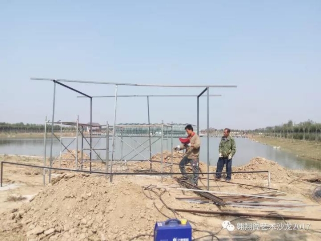 設計很快獲得了批準通過,下面就要開始選擇作品坐落的地址了。鑫嘉源集團的領導集體,非常的開明和友善,對藝術有著獨到和深刻的見解。由于這個團隊的藝術家許多來自國外,他們帶來了非常新鮮、前銳的國際思路,作品的創(chuàng)意都非常當代、跨越。國內的藝術家也多是活躍在中國乃至世界最大的藝術區(qū)宋莊的優(yōu)秀藝術家,團隊成員的作品都具有很深的思想性,許多地方超越了傳統(tǒng)的雕塑概念而自成一格。園區(qū)領導們非常尊重藝術家的創(chuàng)意,所有作品設計未做任何批評修改,三千畝的偌大園區(qū)里,任由藝術家選取自己中意的地址。