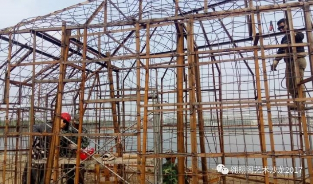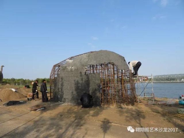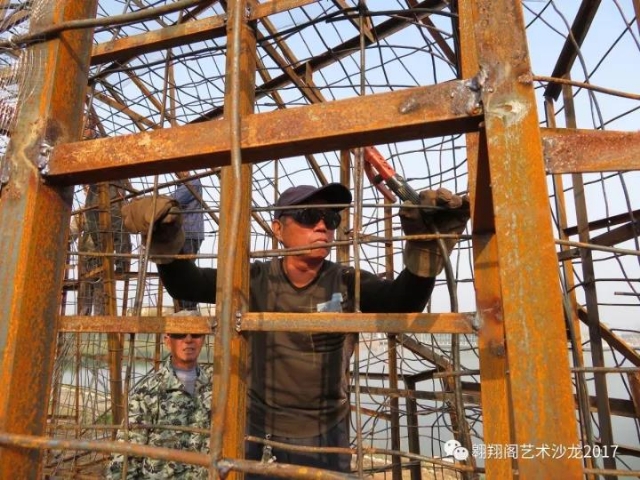 10月16日,開始指導工人用彎曲的鋼筋造型。
