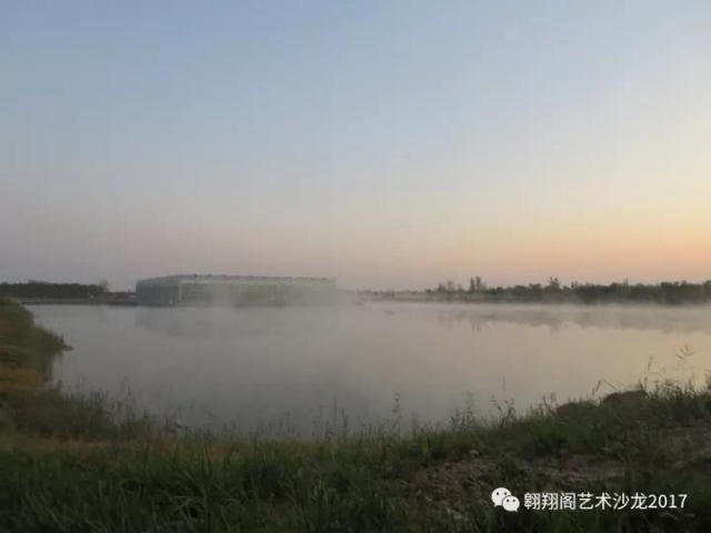 10月24日清晨,我被一陣清澈的鳥鳴聲叫醒。幾只鳥兒在我居住的木屋外嘰嘰咋咋歡快地鳴叫,我覺得那就是在叫我,仿佛有什么關于我的事情正在發(fā)生。于是迅速地簡單穿了些衣裳,就開門來到了屋外。十月末的濱州,清晨已經有很深的涼意,我環(huán)顧深秋中的木屋外的花壇、草地、還有小樹林,綠葉上遍是層層的露珠,颯颯秋風中顯得格外冷靜和透明。在距離我的木屋十幾米開外的人工湖上,正有層層薄霧輕紗般在湖面上彌漫、繚繞,煙波浩渺。我深感意外,沒想到我天天路過的這片普普通通的湖水,還能展現(xiàn)這么神奇的景致。